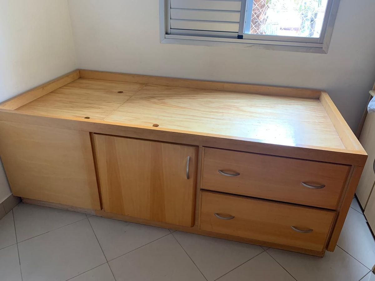 Cama Box Solteiro De Madeira Com Bau Gaveteiro E Armario Com Puxador Movel Usado 38548219 Enjoei